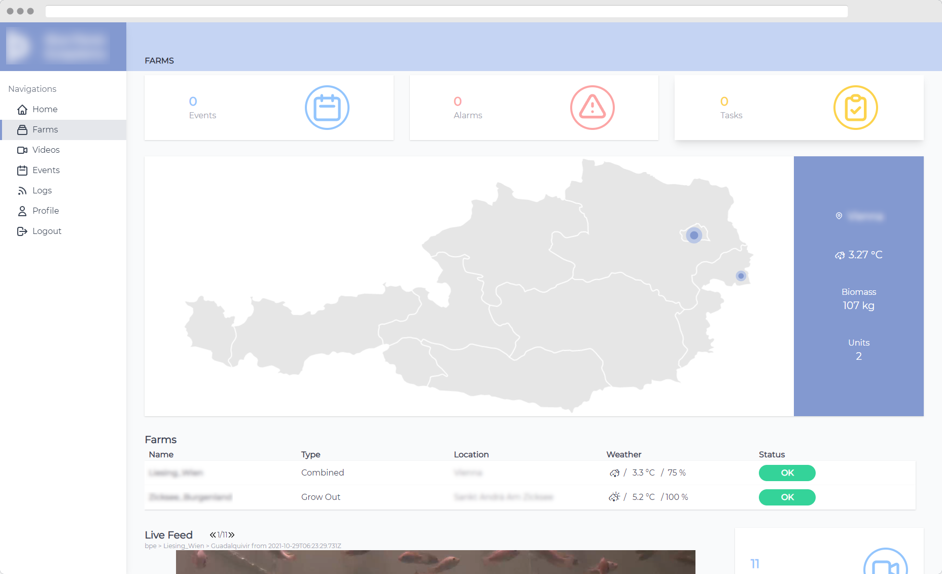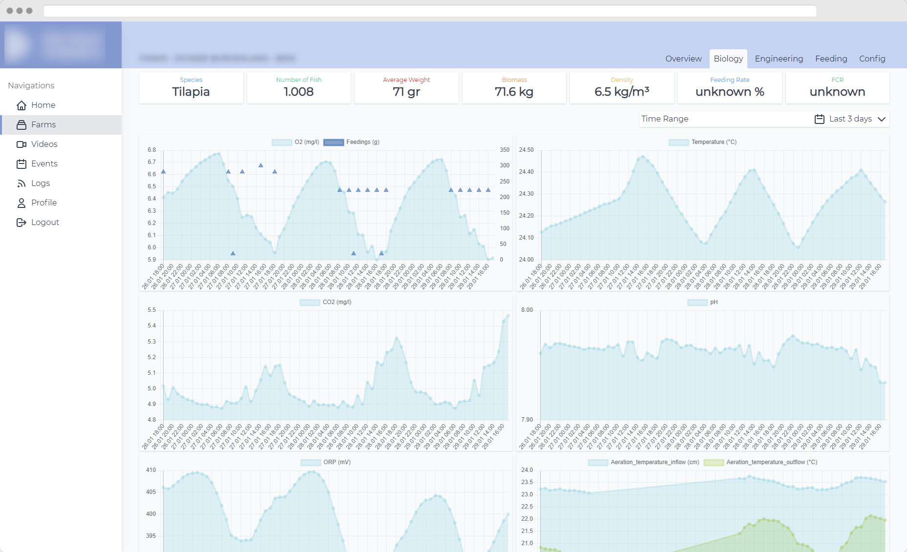 The system collects data via various sensors e.g. water temperature or O2 saturation. Video streams are recorded and AI models extract even more information to determine if the provided ecosystem needs to be adjusted. All this data needs to be persisted and visualized while also allowing target parameters to be set and overwritten by users.